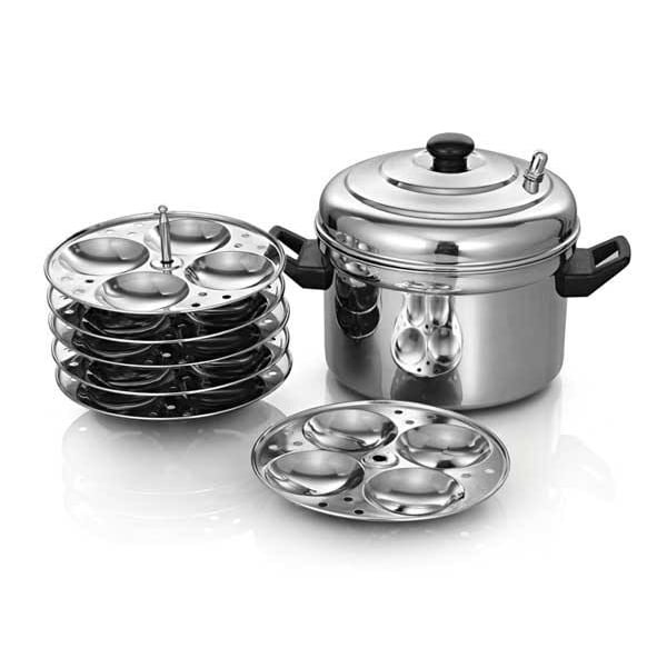 This stainless steel Idly Cooker is designed for fast, efficient, and healthy steaming. Made with high-grade, rust-resistant steel, it ensures even heat distribution for perfectly soft and fluffy idlis every time. The set includes multiple stackable idly plates, allowing you to prepare a large batch in one go—ideal for families and commercial use. Its sturdy handles provide safe handling, and the tight-fit lid helps retain steam and flavor. Durable, easy to clean, and suitable for daily kitchen use, this Idly Cooker is a must-have for traditional South Indian cooking.